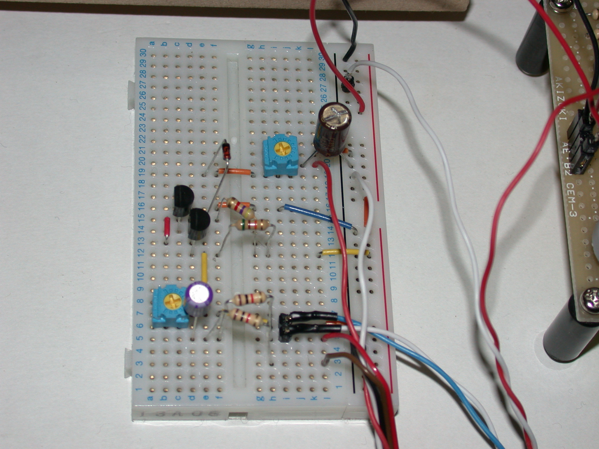 動き加減は二つののボリュームと入力音量で調節します。モーター車の種類によっても動きが大きく異なりますし、出力のコンデンサ容量でも挙動が極端に変化します。
