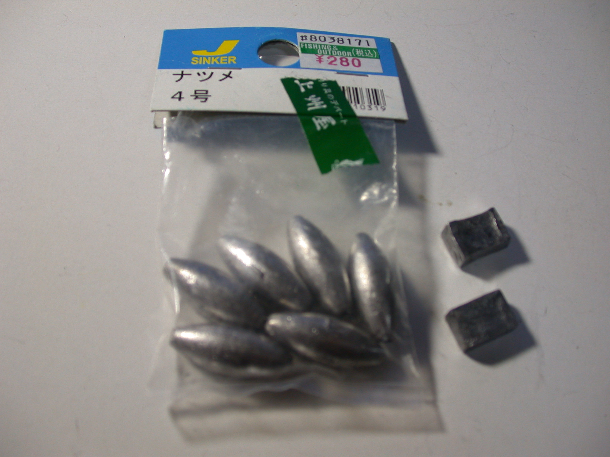 おもりは釣用のおもりを加工します。